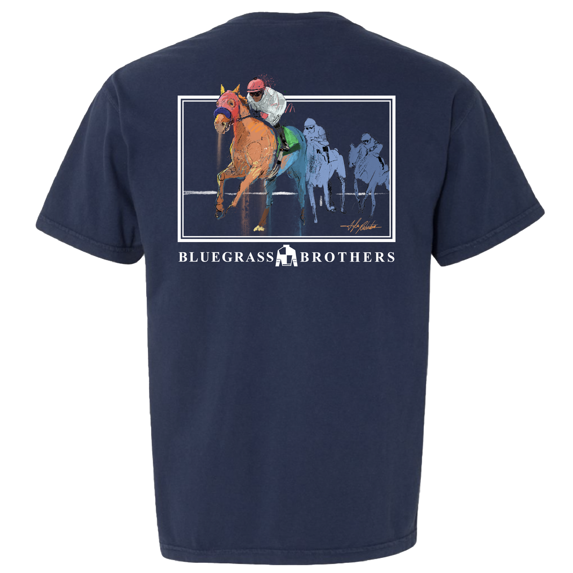 Honor the pursuit of greatness with the Chasing a Legacy t-shirt, featuring exclusive artwork by Tyler Robertson. This striking design captures the essence of horse racing—raw speed, determination, and the relentless drive to lead the pack. This vibrant piece celebrates those who chase history and forge their own path.